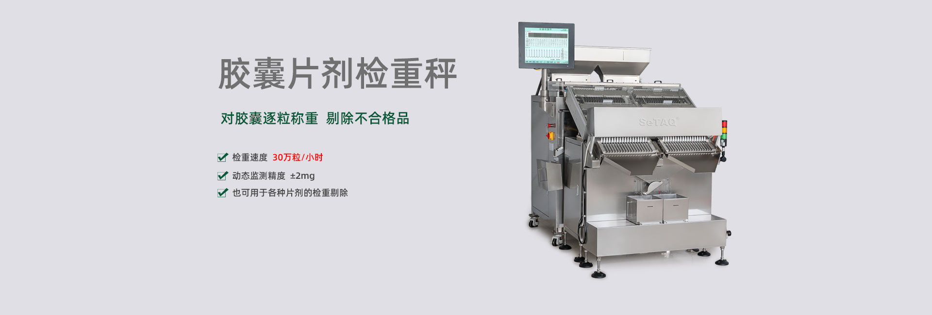 擁有近百項(xiàng)檢重專利和專有技術(shù),開(kāi)發(fā)的產(chǎn)品可高速、高精度地檢測(cè)膠囊、片劑、丸劑、軟袋、軟管、紙盒、藥瓶、紙箱、薄片及各種器械、零件的重量偏差或缺件